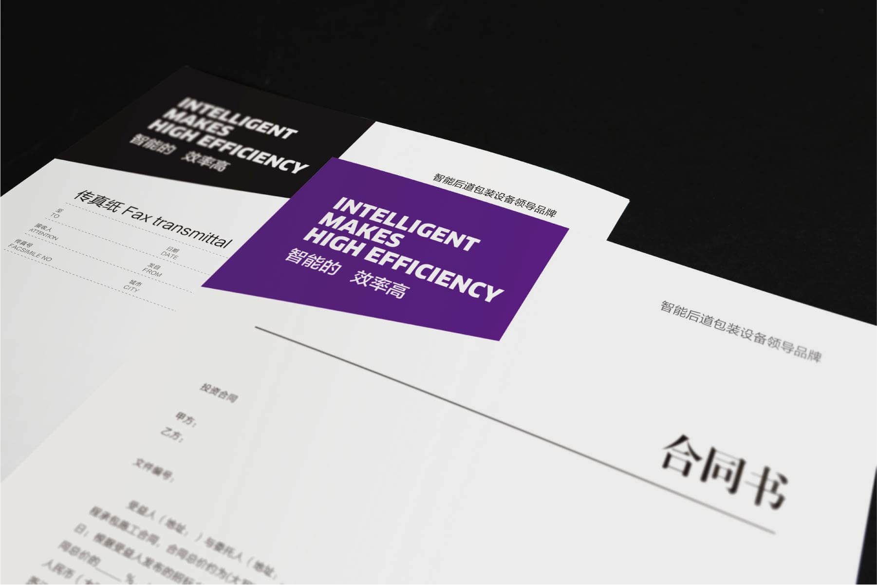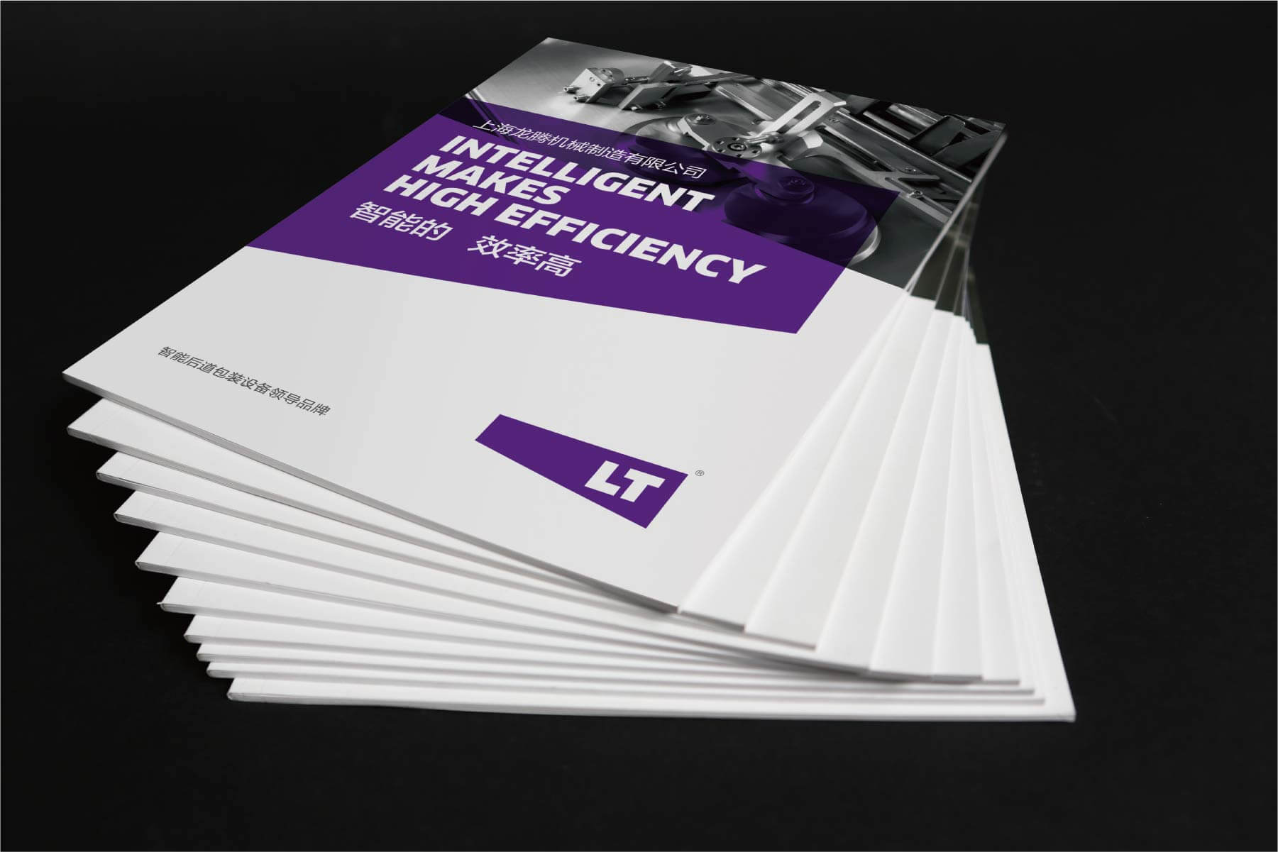 畫冊(cè)封面以 LOGO 紫色為主基調(diào),搭配 “智能的,效率高” 廣告語,開篇即傳遞品牌核心價(jià)值;